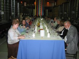 After a pleasant reception in the Archery Summit barrel aging caves sipping on their 2002 Red Hills Estate Pinot Noir, one hundred of us “Bad to the Beaune” Wine Club members moved into the fermentation room where long rows of tables were laid out. Each place setting had five wine glasses plus water glasses. Maximilian Riedel started the seminar with a history of the 11 generations of Riedel glass makers and how he got interested in designing wine glasses. As he switched from history to glass tasting, he reminded us that 70% of the taste of a wine actually comes from our sense of smell, the aroma, the nose of the wine, the bouquet (recent research suggests that 90% of our taste is actually smell). He then went into the basics of a good wine glass – it must be lead crystal; it must be completely clear; it must have the appropriate volume to allow the bouquet to collect but not overwhelm; and it must allow for “three fingers” of wine with plenty of room for the bouquet.