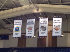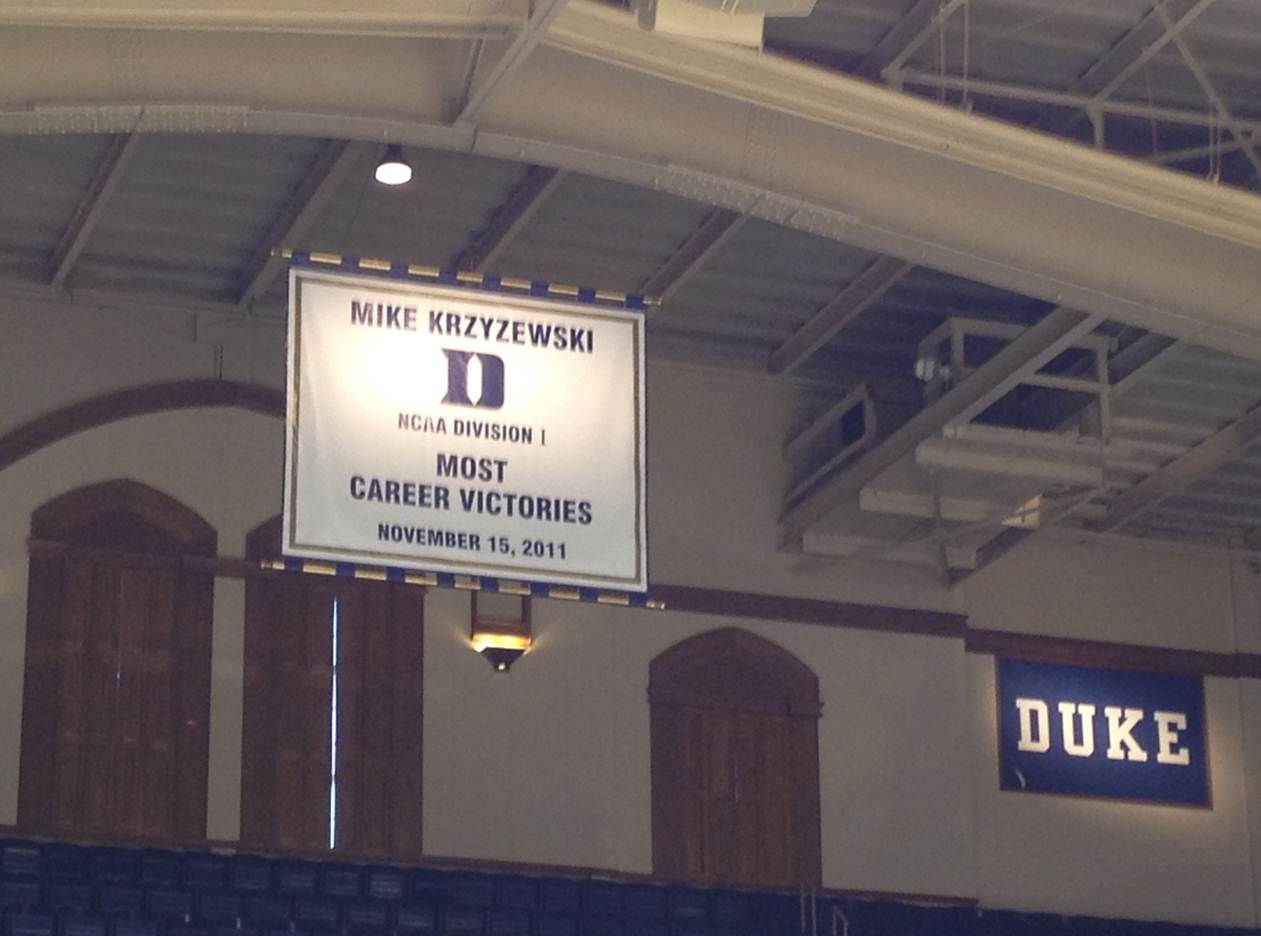 As I scanned the stadium’s rafters, there were lots of wonderful additions in the form of four National Championship banners. The newest addition was a big banner celebrating Coach Mike Krzyzewski’s becoming the NCAA’s winningest men’s basketball coach. Lots of the attendees were wearing T shirts proclaiming “903 wins and counting.”