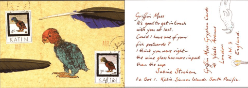 As I look at these new forms of digital text where the text is embedded in art, I reflected on a recent conversation with Jim and Michelle McCarthy where they showed me examples of reports they gave to clients.  These reports were fragments of text placed on top of the team art that was generated during one of their Bootcamp weeks.  Both of these discussions reminded me of Nick Bantock’s series of books that started with Griffin & Sabine: An Extraordinary Corespondence. Bantock created a book as a series of illustrated postcards and letters for the user to “experience” the correspondence.