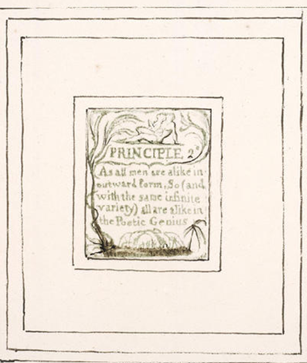 The reader of the original poetry would have a very different experience than a more modern print edition of The Poems of William Blake which is just the plain text: