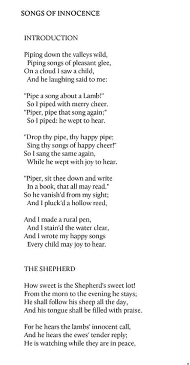 Since I am mostly a bottom up kind of thinker, I asked Kate to give me an example of what she meant.  She pointed to an example in the print world of a shift in media.  When William Blake first published his poems he wanted complete control of the publishing process as he wanted his poetry “read” surrounded by appropriate artwork (see William Blake Archive).