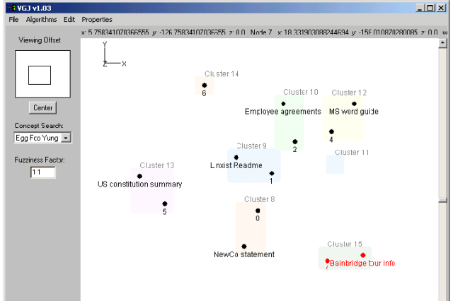 At 5PM yesterday, I saw my 30 year dream come alive. I was able to display my research papers. I navigated around the clusters and the concepts. And then when I selected on a document, whether it was MS Word or a PDF, up it would pop in its own document viewer. Unbelievable. The only thing missing is the ability to index the books that I have in my home library.