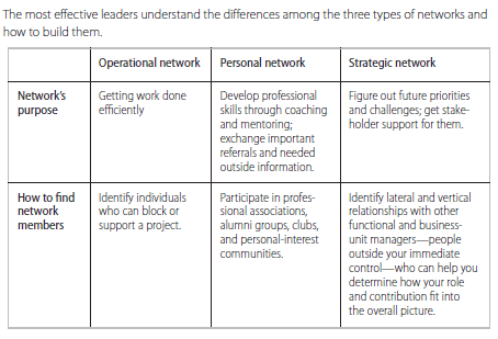 Not often enough my schedule conspires to present a strategic networking day. An excellent article in the Harvard Business Review “How Leaders Create and Use Networks” makes the distinction between Operational Networks, Personal Networks and Strategic Networks. Most of our time is spent working within Operational or Personal Networks. The authors present the importance of spending significant time creating and nurturing your strategic network.