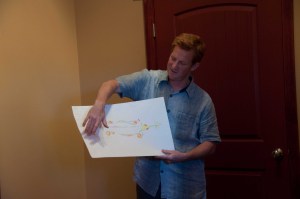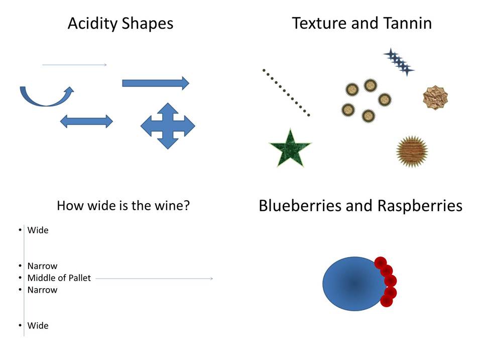 After going through some examples and explaining some of the symbols, Patrick pours one of the current wines and has the “students” practice their shape tasting drawings: