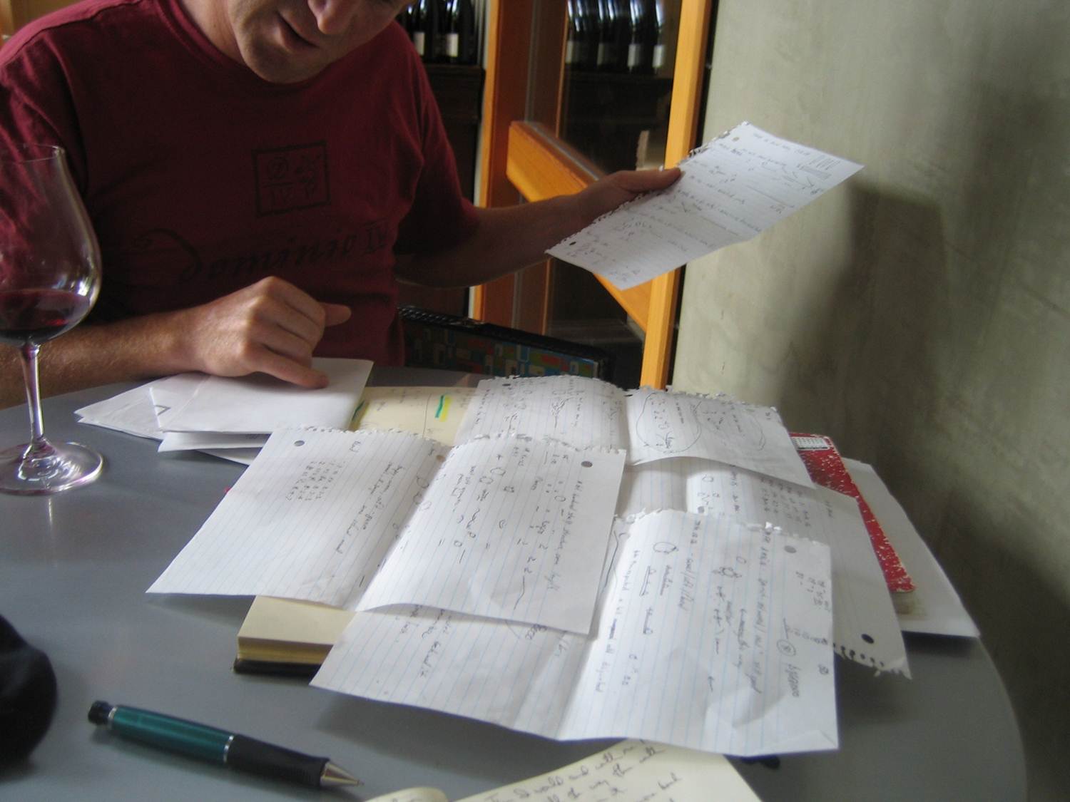 Along with his sketch book, Patrick pulled out some examples of the informal shape tasting notes he takes as the fermentation and trial blending go merrily along.