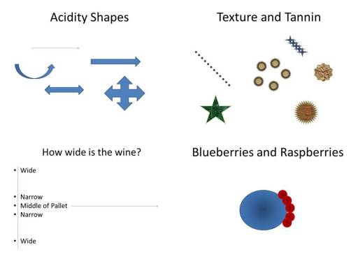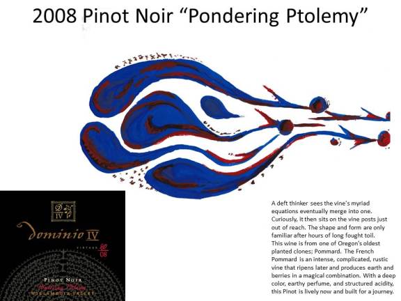 With these shapes, Patrick then provides an example of a shape tasting of the Dominio IV 2008 Pinot Noir “Pondering Ptolemy.”