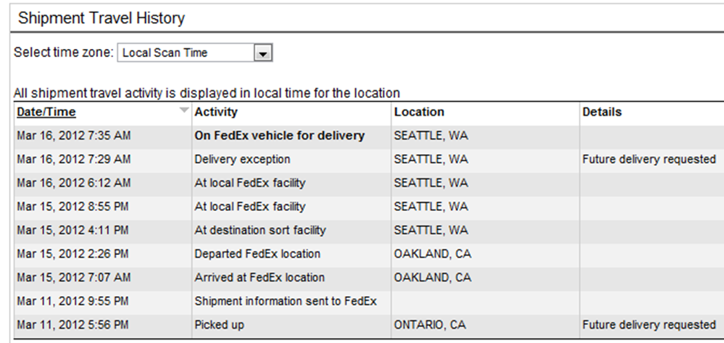 I was delighted to see that my new iPad actually shipped from Ontario, CA on March 11, 2012. Then it just sat in Oakland for a couple of days. I had hopes that maybe somebody had screwed up and I could get my iPad 3 early. No such luck. Fedex became Apple’s staging warehouse for the online pre-orders.