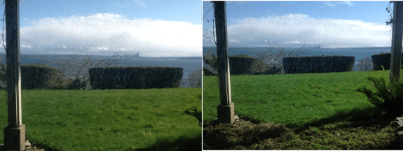 As you can see there is a larger field ov view from the camera with more of the foreground outside my office and you can see two of our deck pillars instead of one.  You can also see greater resolution in the blades of grass.  So clearly the 5 megapixel camera is a big upgrade.