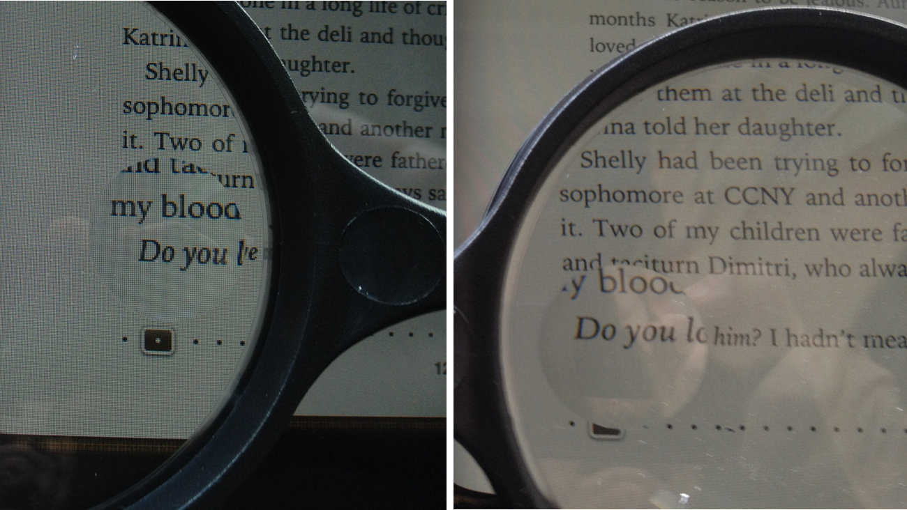The iBooks app was clearly upgraded for the new retina display.  You can see a difference in the hairline characters like an “l”. The crispness of the characters reminded me of the first time I saw a 300 dpi LCD display while consulting at Xerox PARC in the early 1990s. The minute I saw the beautiful hairline characters and tiny line drawings on a CAD circuit drawing was when I realized that when these devices became popular I could move away from my beloved hard copy books. That time is now.