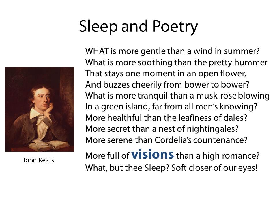 Late that evening I was in the lab avoiding writing a paper on John KeatsSleep and Poetry.”  I was feeling frustrated spending time on this silly English literature course when all I wanted to do was program my “personal” computer.  As I started reading this poem, I experienced the poetry putting me to sleep.