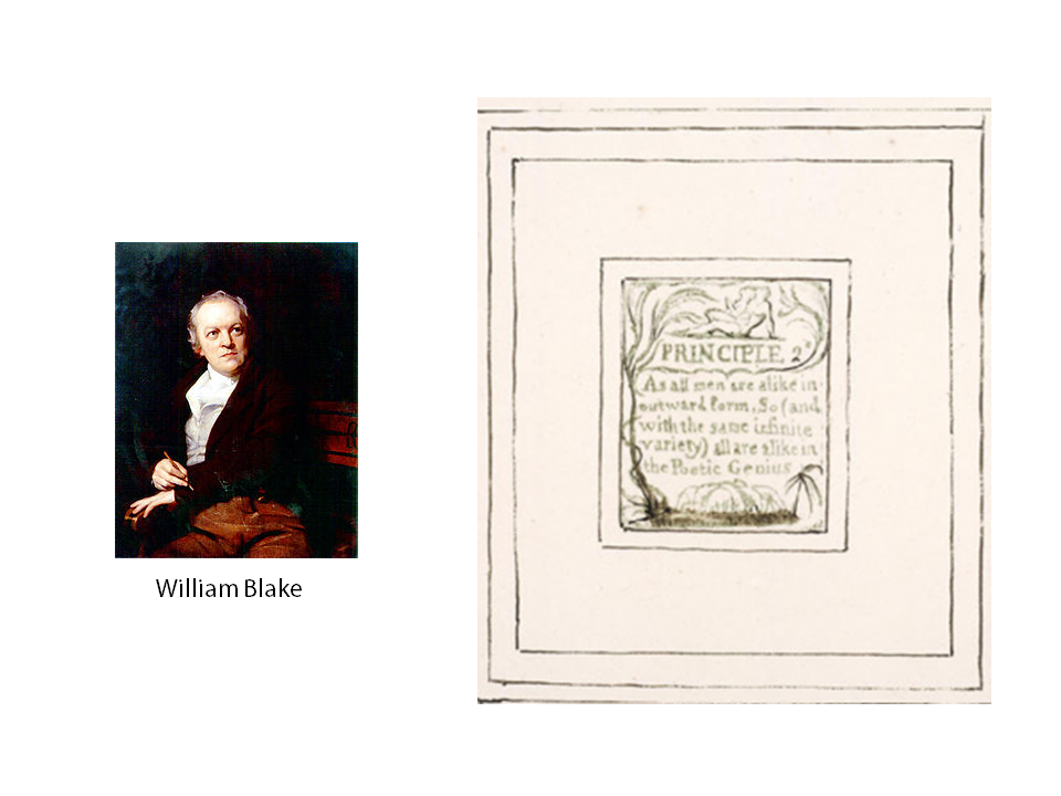 The thought of humanities students programming and thinking about literature through software was too much.  Kate noticed my disbelief and confusion and brought me full circle when she pointed out that the best authors have always been integrated media creators.  Say what? She reached into her bookcase and pulled out a copy of one of William Blake’s books.  “Blake wouldn’t let anybody else publish his works because he wanted each line of his poems to be accompanied by his own illustrations.  Blake was a poet, illustrator and printer.”
