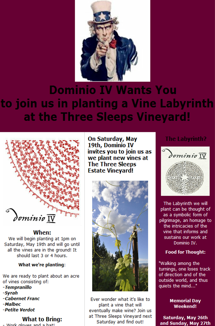 come plant a grape vine labyrinth near Mosier, OR at their Three Sleeps Vineyard. I checked my calendar and I had nothing planned for that day. It has been way too long since I’d been to Oregon Wine Country so this was a great excuse to have another authentic experience for my wine geek education. I usually try to get down to their McMinnville winery a couple of times a year to see what Patrick Reuter is innovating around the making of fine wine. I also try to arrange to help out in the tasting room or with the fall crush. However, it has been over a year since I’ve made time to visit my favorite wine making family. While I’ve been hearing for years about their biodynamic vineyard in the Columbia Gorge, I hadn’t managed to make my way to the property. Clearly, now was the time to go learn some more about fine wine growing.