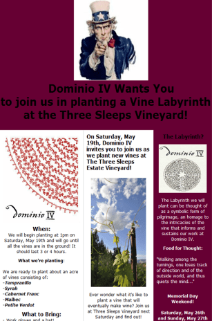Jeff is doing some interesting work promoting his four principles and twelve practices of fine wine making. His focus is on figuring out how to rate wineries over the long term rather than myopically only pay attention to a particular bottle of wine from a particular vintage. I look forward to many great interactions in the future with Jeff as he helps all of us be intentional in what we look for in fine wines and fine wine growers. Jeff posted his video of the labyrinth planting earlier today.