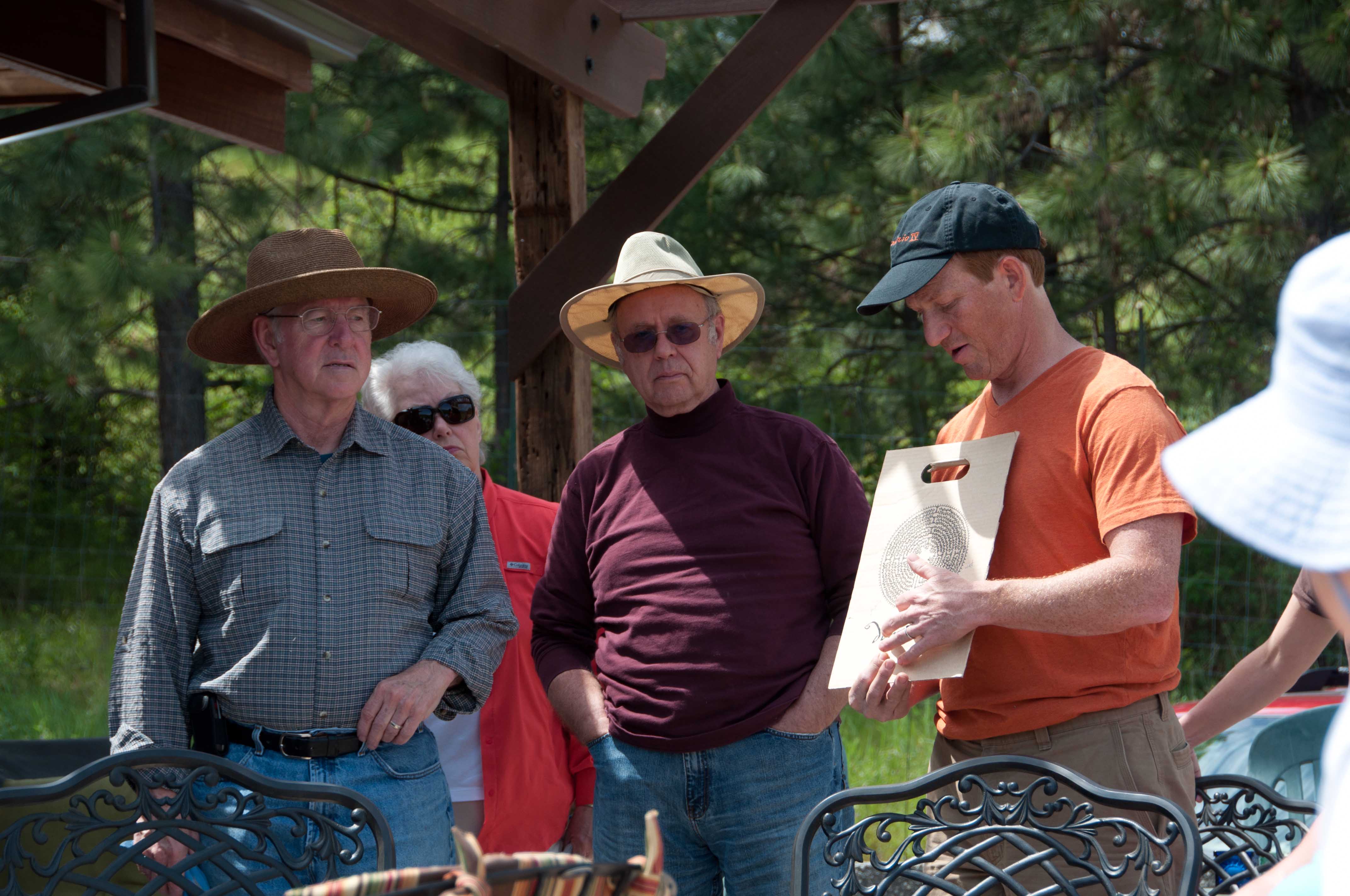 We all gathered on the front porch of the Bartholomew’s home where Patrick shared his vision and philosophy for the labyrinth. His design challenge was how to lay out the labyrinth so that it would be both an interesting walk and allow the farming and irrigation of the vines to occur. Patrick’s explanation of the labyrinth:
