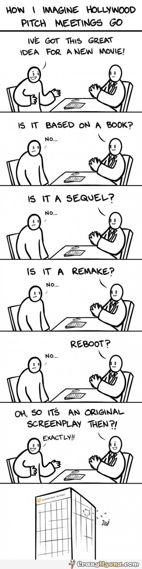 Pink, Daniel H. (2012-12-31). To Sell Is Human: The Surprising Truth About Moving Others (pp. 157-158). Riverhead Hardcover. Kindle Edition. (and see the articles “Assessing Creativity in Hollywood Pitch Meetings” and “How to Pitch a Brilliant Idea“).
