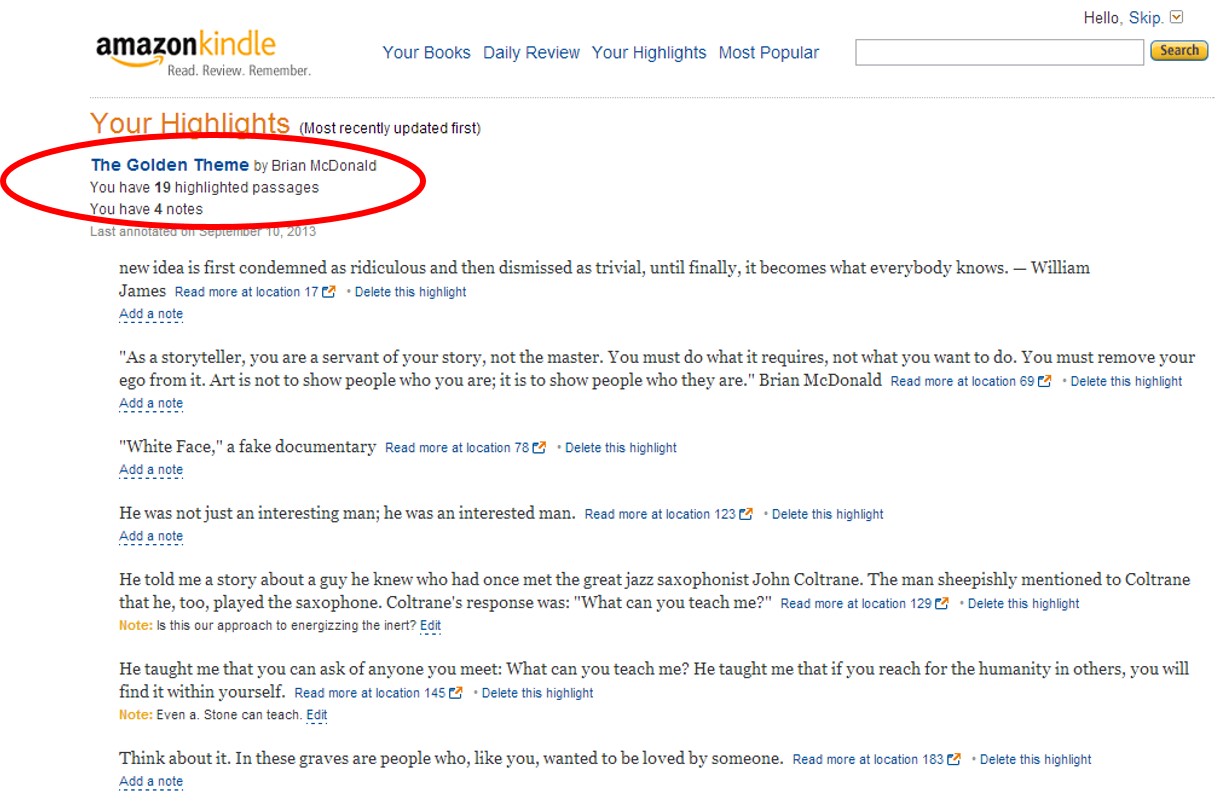 When I do my “Best Non-Fiction Books” of the year annual blog post, I make a preliminary list of the books that had the most impact on me the previous year. Then I go to the online highlights and notes and see which books have the most highlights and notes.  That’s how I rank order the books that I select. [For some reason this feature is little known and hard to find on the Amazon web site.]