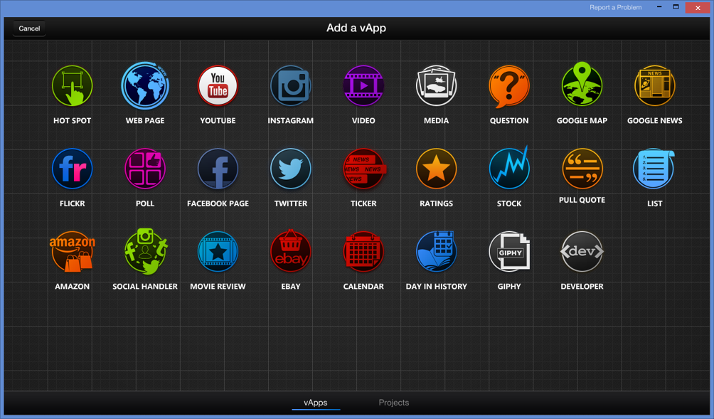 Then I noticed that they had a developer capability. TouchCast ships with several vApps.