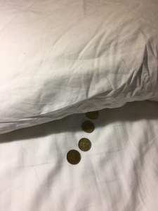 This morning I was surprised by the joy of finding several coins under my pillow.
