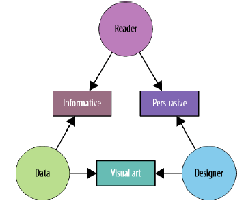 The authors go on to explain that when designing visualizations there is a trinity of informative versus persuasive versus visual art.