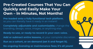 I did not sign up. I just couldn’t figure out how Iny could get 20 quality courses created in just three months for only $100,000. Then it hit me. Iny already has moved >1,000 students through his master class on creating core transformation courses. He has the content developed from his previous students. All he had to do was select the best courses and switch out the “expert” who developed each of the 20 courses for a script that the instant course purchaser could replicate in their own voice.