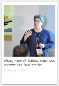 At the Angels and Demons Zino Society event, the only interesting company to me was HUBEdu who were pitching their tool for bridging the gap between Facebook and Learning Management Systems. Tiffany Reiss is the CEO and a professor at several local universities. She clearly has passion about her idea to engage students where they already