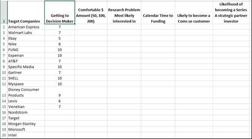 - Likely dollar amount ($50k, $100k, $200k) that each company would be willing to spend