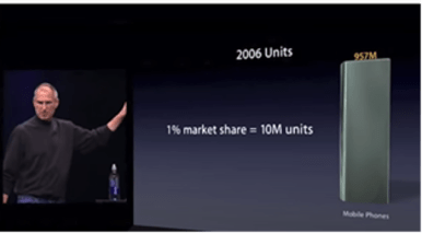 Steve modestly shared that he would be happy with first year sales of 1% of that market – 10 million iPhones at $500+ each. It doesn’t take a calculator for an investor to see the business impact of the product AND the product vision.