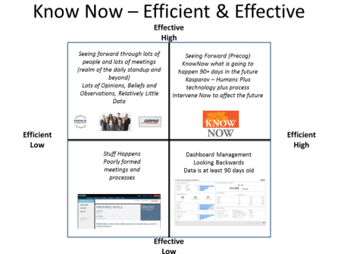 Knowing Now what is going to happen in the next 90 to 180 days means that you can start making organizational interventions NOW to change future business performance instead of having to wait until the end of the quarter to figure out what happened.