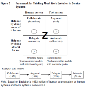 We looked at the SD Logic Augment sequence and realized that we were moving from the manual (collaborate) to the augment step. We agreed that we were too early in our understanding to examine outsourcing (delegate) or full automation (self-service).