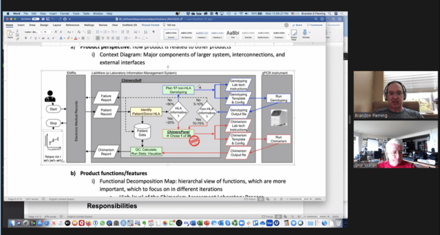Brandon Fleming is the CEO of an early stage biotech startup doing chimerism tests for patients who had bone marrow transplants. The test is moving from a research phase to an MVP phase. Where manual processes were OK for research they will be too expensive for a V1 product. So Brandon is now analyzing the video ethnography of the OBSERVE phase to the ORIENT phase to figure out where to start software prototyping.