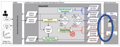 The steps that met those criteria were the setting up of the lab machine and getting the results back from the lab machine (within the blue oval). Brandon now had his starting point for where to prototype.