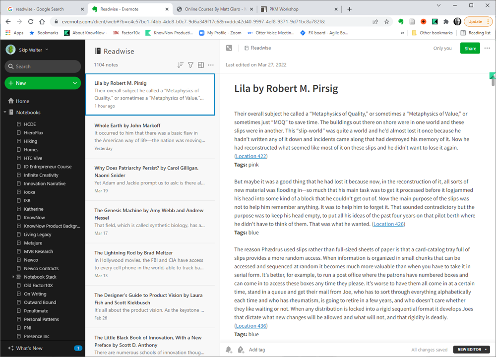 With our KnowNow software we identified five different digital working styles. One of those working styles is NotesLinking. My commonplace book is a good starting point for solving for NotesLinking. These blog posts are a step along the way of creating more value out of my notes. But I still rely on my brain’s neural links to connect these disparate notes in my commonplace book.