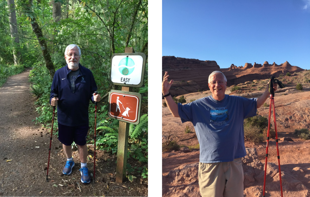 Nordic walking in the Bainbridge Island woods and Arches National Park
