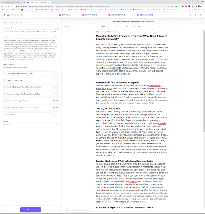 After spending sixteen hours writing the previous blog post (“Becoming an Expert“), I decided to see what GPT Chat and Writesonic could produce.