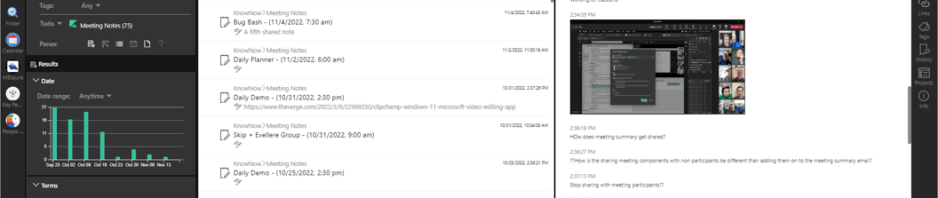 Greg Buckles is another note taker. He noticed that with the shift to time stamped meeting notes that are accompanied by a video with a transcript that he had transformed to MAKING Notes. Instead of just taking notes so that he could remember, the automated transcript could capture the full conversation. He could now listen and MAKE notes on what knowledge relationships were being triggered during the meeting. If an important idea was discussed that he wanted exact quotes for, he could hit the highlight button, and thirty seconds of the video and the transcript would be highlighted automatically.