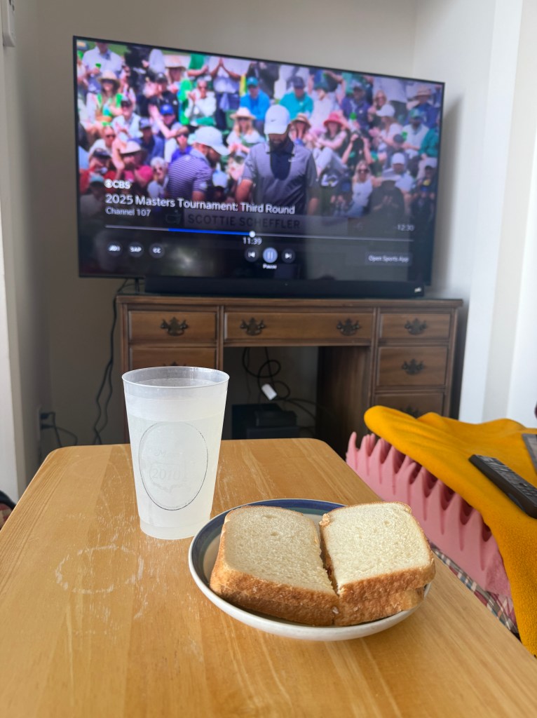 I love the Masters Golf Tournament at Augusta National Golf Course. Every year, I eagerly watch and listen to Jim Nance describe “a tradition unlike any other.” I scramble to find some pimento cheese for my “Masters pimento cheese” sandwich and pull out my worn 2010 Masters plastic glass for my beer. Then I sit back and enjoy the golf.