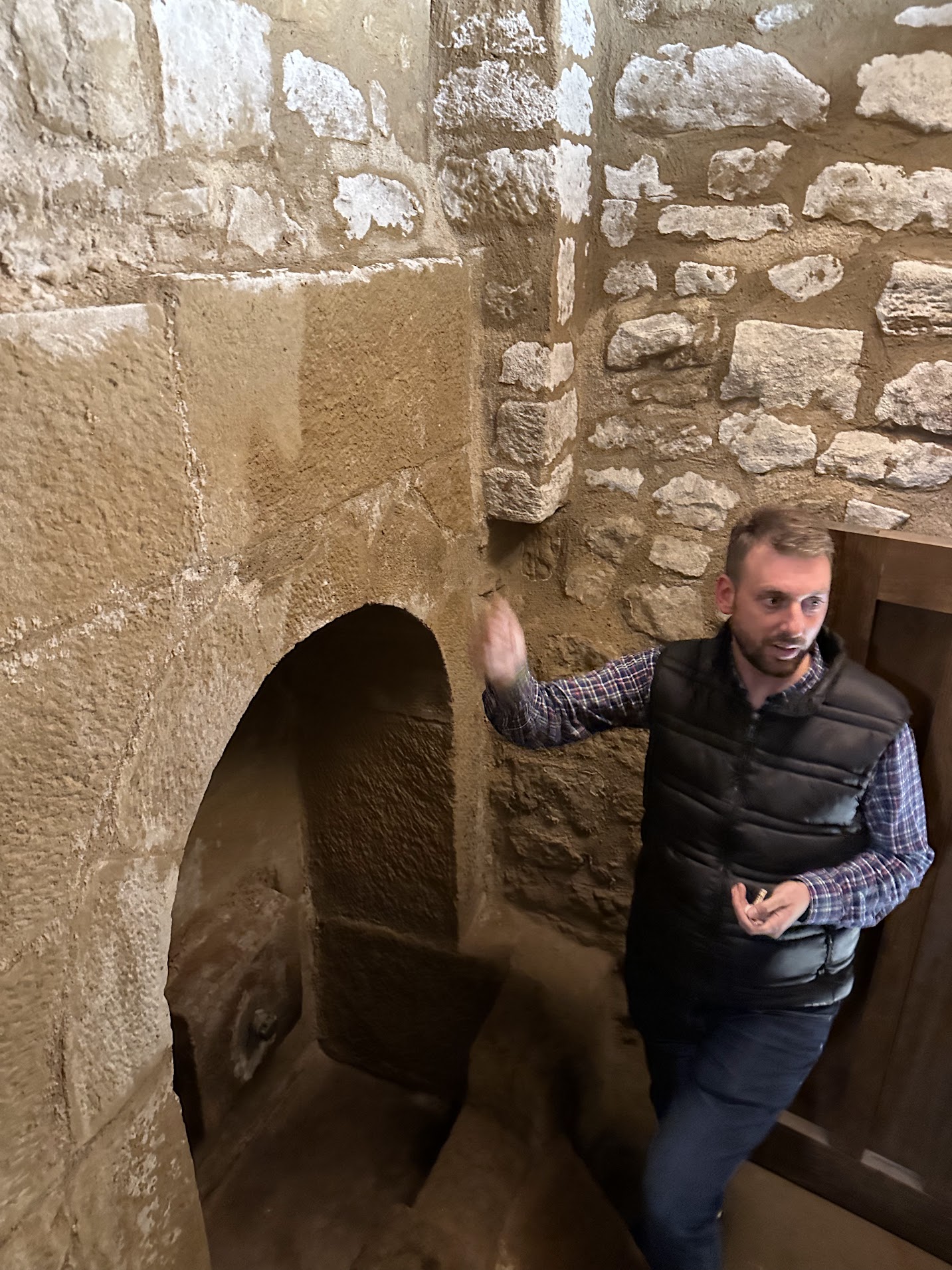 Mikel shared that after his father excavated this tunnel, they tried to find out what this architected cave was used for. Their home is close to the Church of Santa María de los Reyes. From their research, they believe this tunnel was used as a hidden church during times of religious persecution. We came for wine. We received a historical experience of a lifetime.