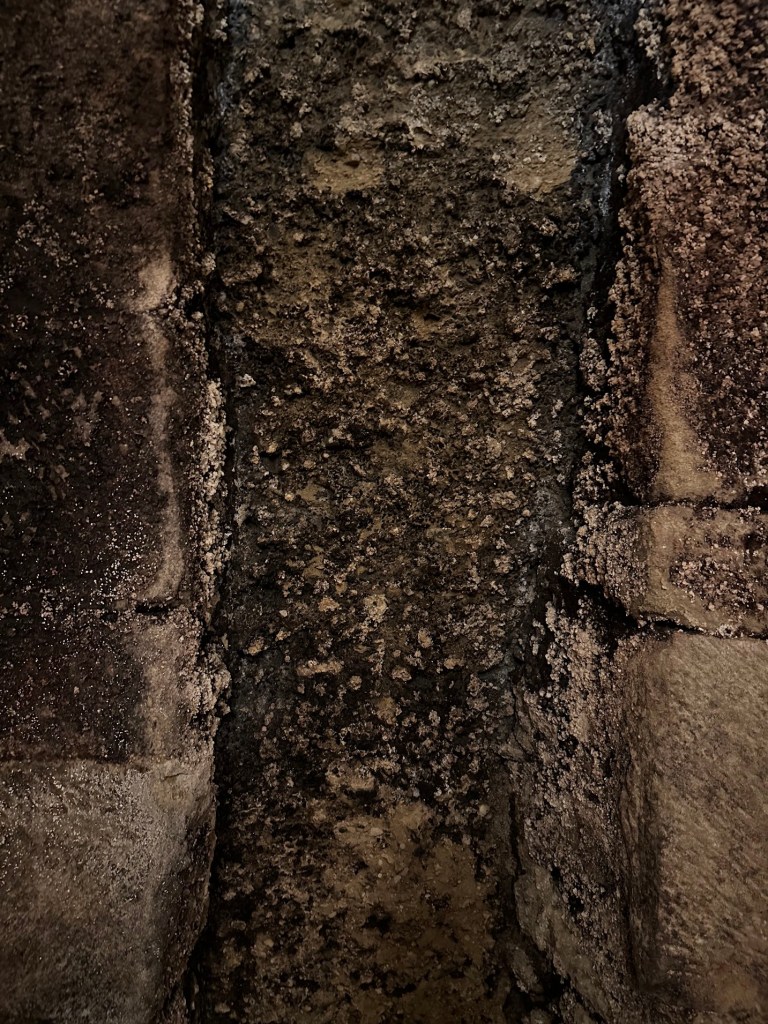 As we descended the ancient stairs to several layers of tunnels, Mikel explained that when his father bought the house he decided to excavate the tunnels under their house. He also got permission to excavate the tunnel that runs under their neighbor’s houses. I realized that there was no railing to hold on to. Being very unsteady due to my surgically repaired right leg, Mikel said it was OK to hold on to the rock wall.